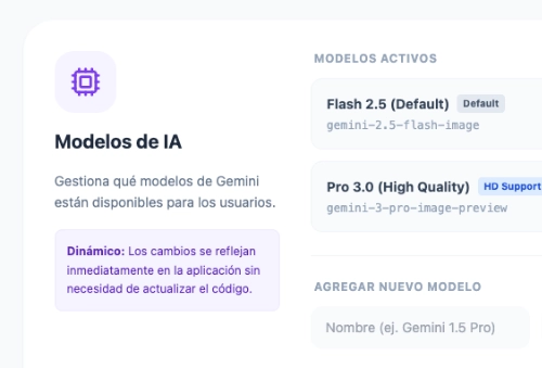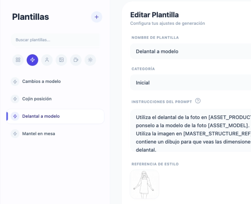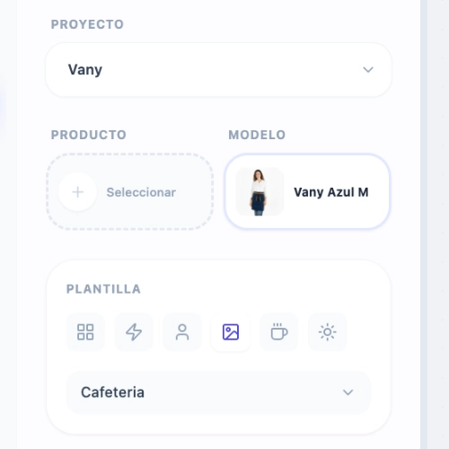 Guarda tus propios productos y modelos para que cada generación mantenga la misma identidad visual.