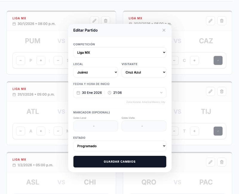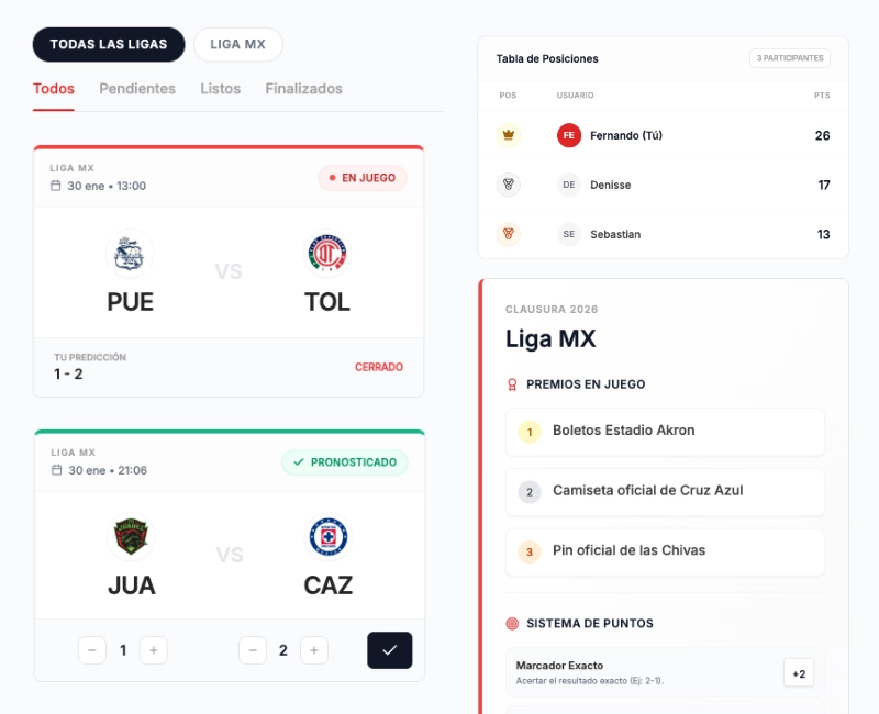 Toma el mando de tu activación deportiva con un panel administrativo intuitivo. Controla usuarios, edita jornadas y monitorea el éxito de tu liga en tiempo real
