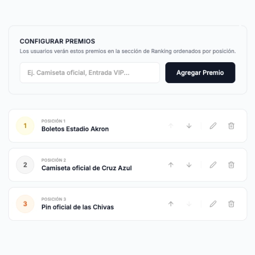 Define la dinámica de juego, elige los torneos y establece los premios que mejor conecten con tu comunidad