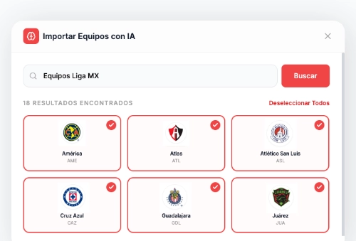 Indica los equipos que quieres en tu base de datos para agregarlos a tus competencias